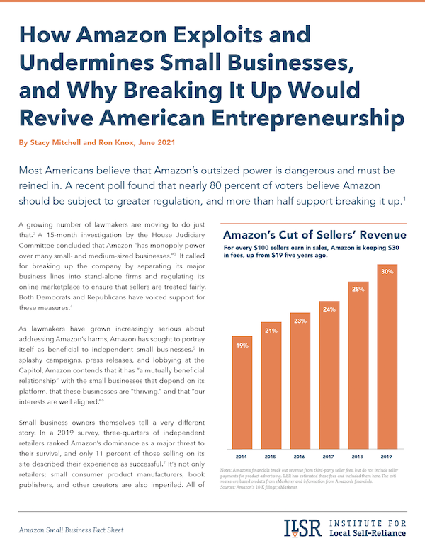 Congress shouldn’t let Amazon dictate whether and how small businesses can compete online. If policymakers do not act to check Amazon’s outsized power, they’re effectively allowing Amazon to be a private regulator of the online market, deciding which businesses may reach customers and the price they must pay to do so.
